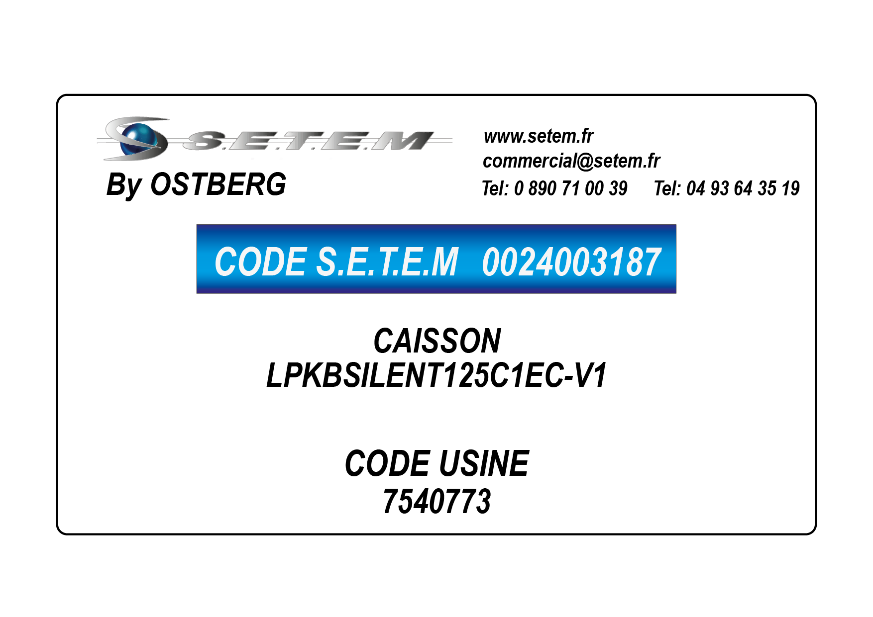 Vous recherchez un produit de la marque OSTBERG dont le modèle est le LPKBSILENT125C1EC-V1 et de code usine 7540773.