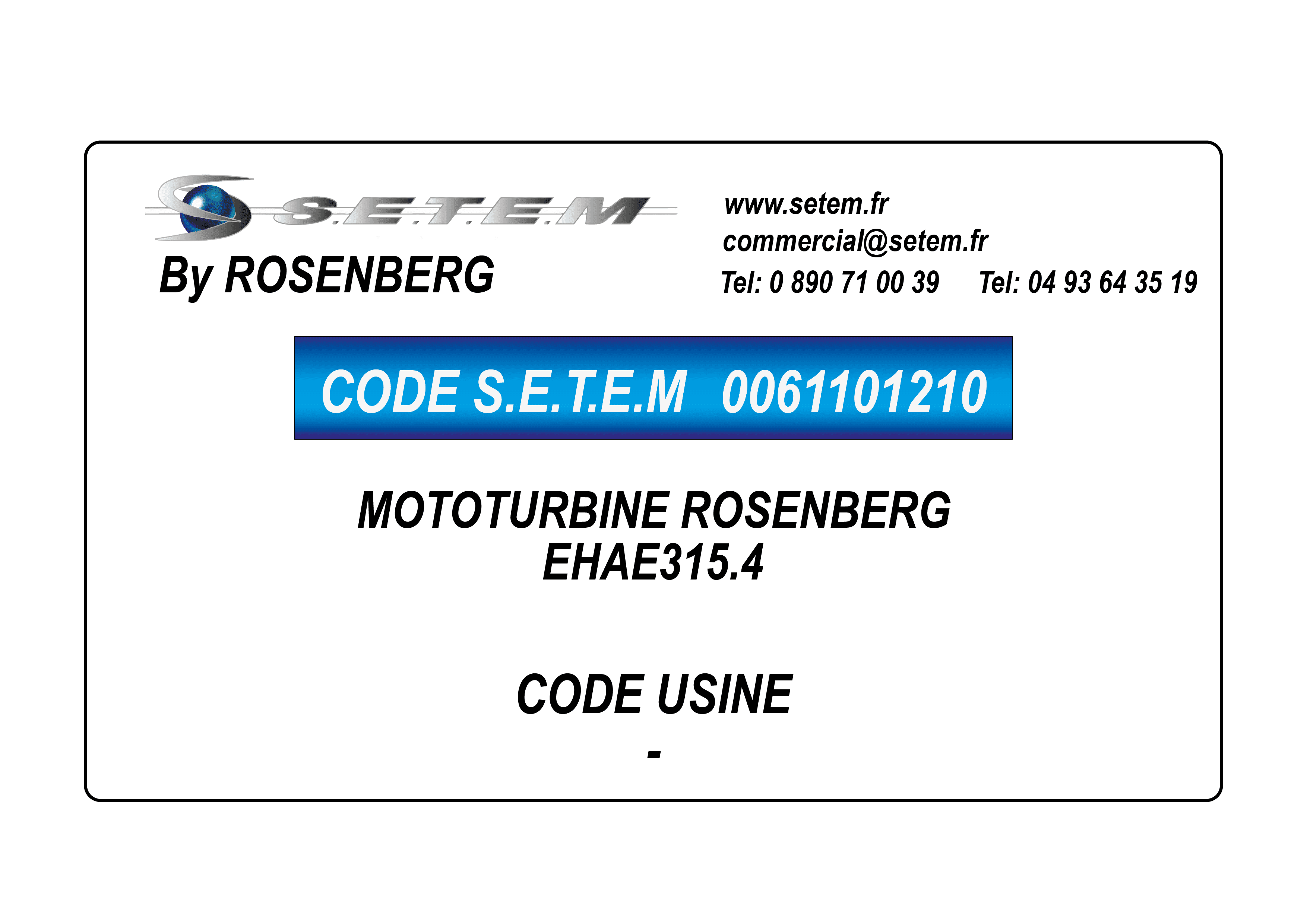 Celui-ci est connu dans le système informatique de chez S.E.T.E.M sous la référence 0061101210.