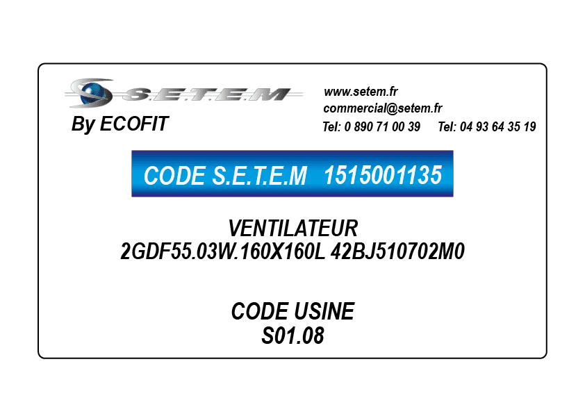 Celui-ci est connu dans le système informatique de chez S.E.T.E.M sous la référence 1515001135.
