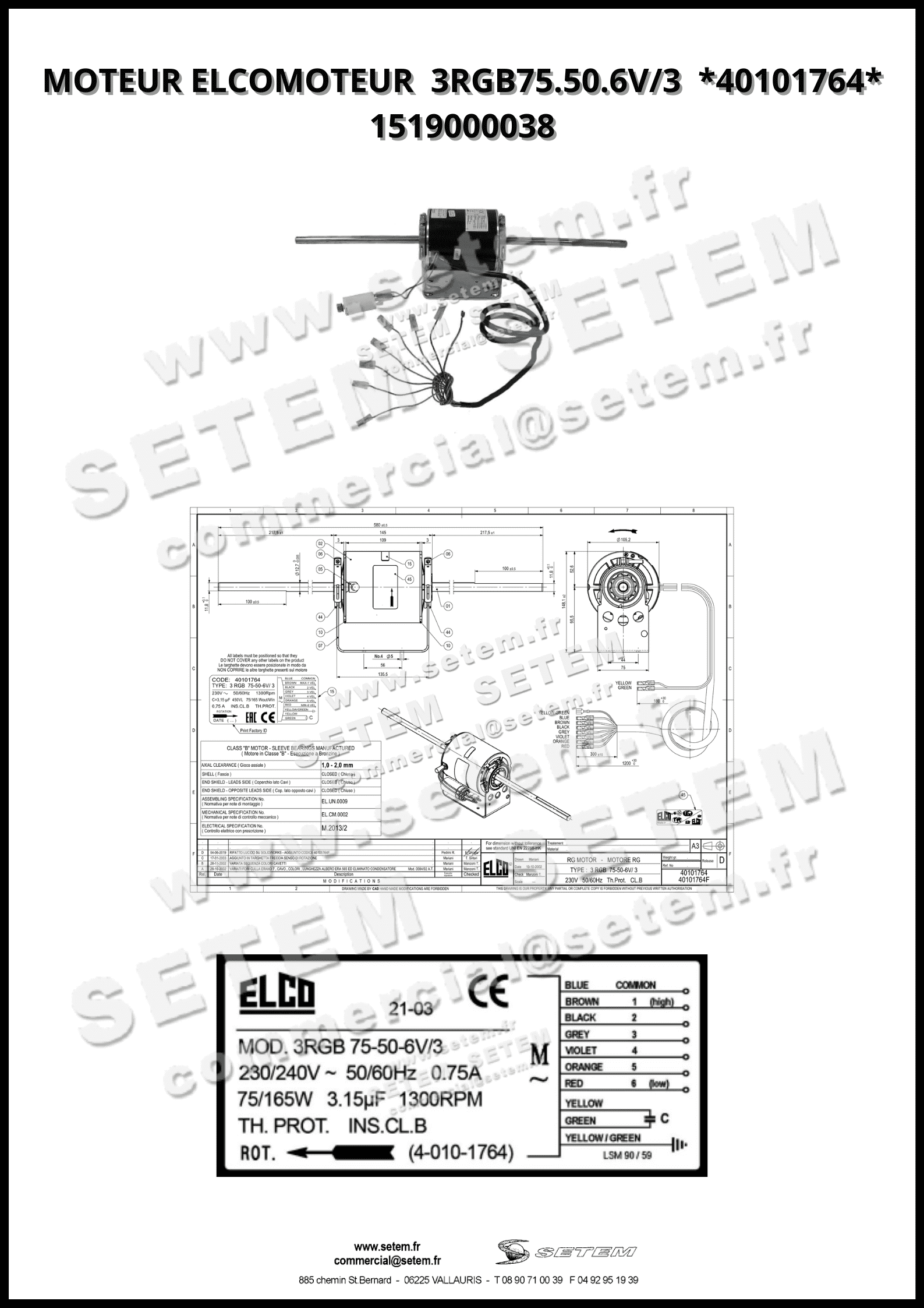 Vous recherchez un produit de marque ELCOMOTEUR, de désignation 3RGB75.50.6V/3 et de code usine 40101764.