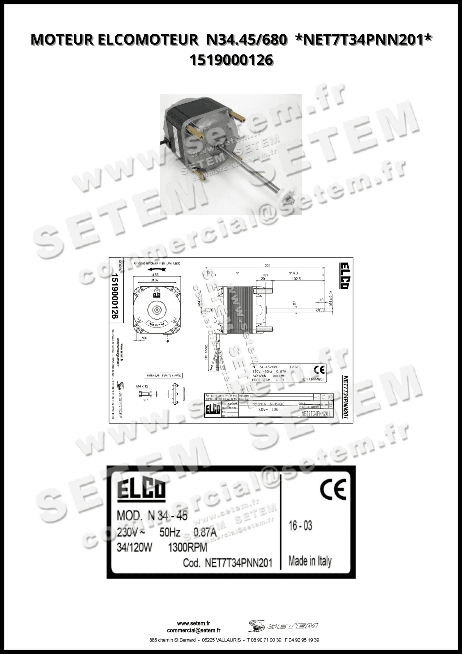 Vous recherchez un produit de marque ELCOMOTEUR, de désignation N34.45/680 et de code usine NET7T34PNN201.