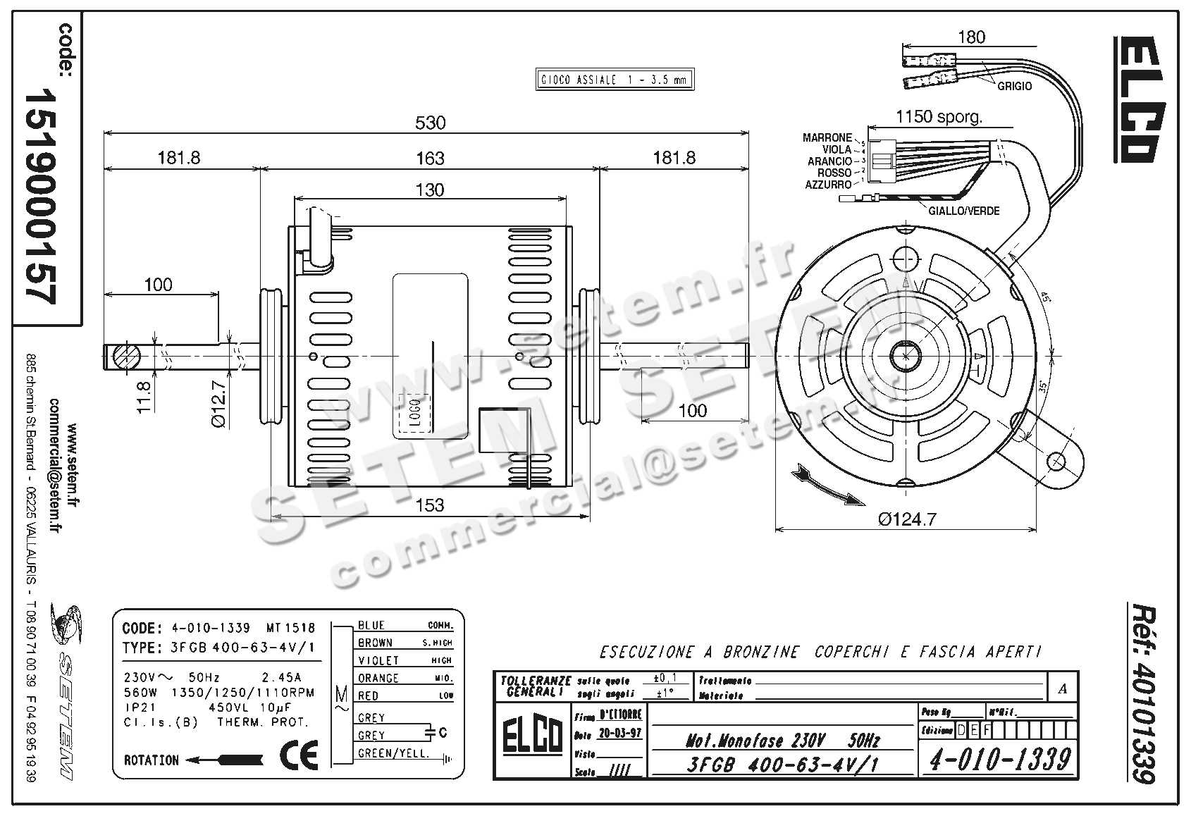 Vous recherchez un produit de marque ELCOMOTEUR, de désignation 3FGB400.63.4V/1 « MT1518 » et de code usine 40101339.