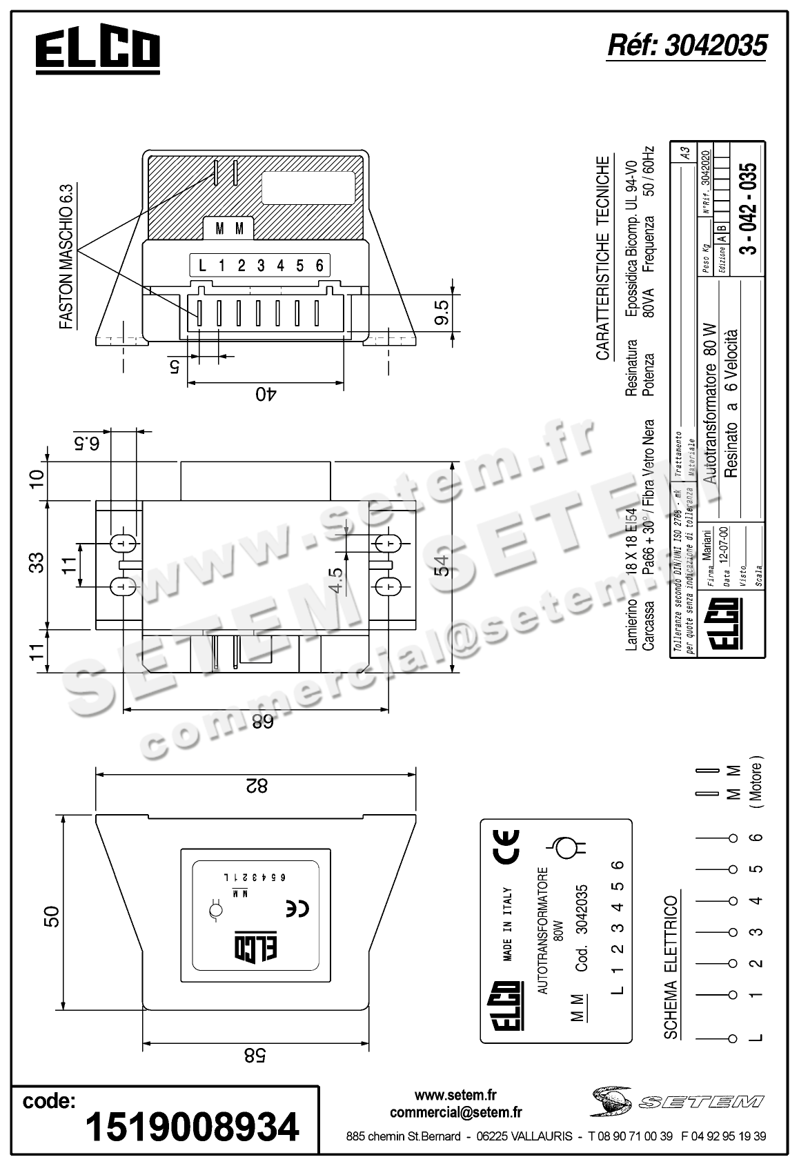 Celui-ci est connu dans le système informatique de chez S.E.T.E.M sous la référence 1519008934.
