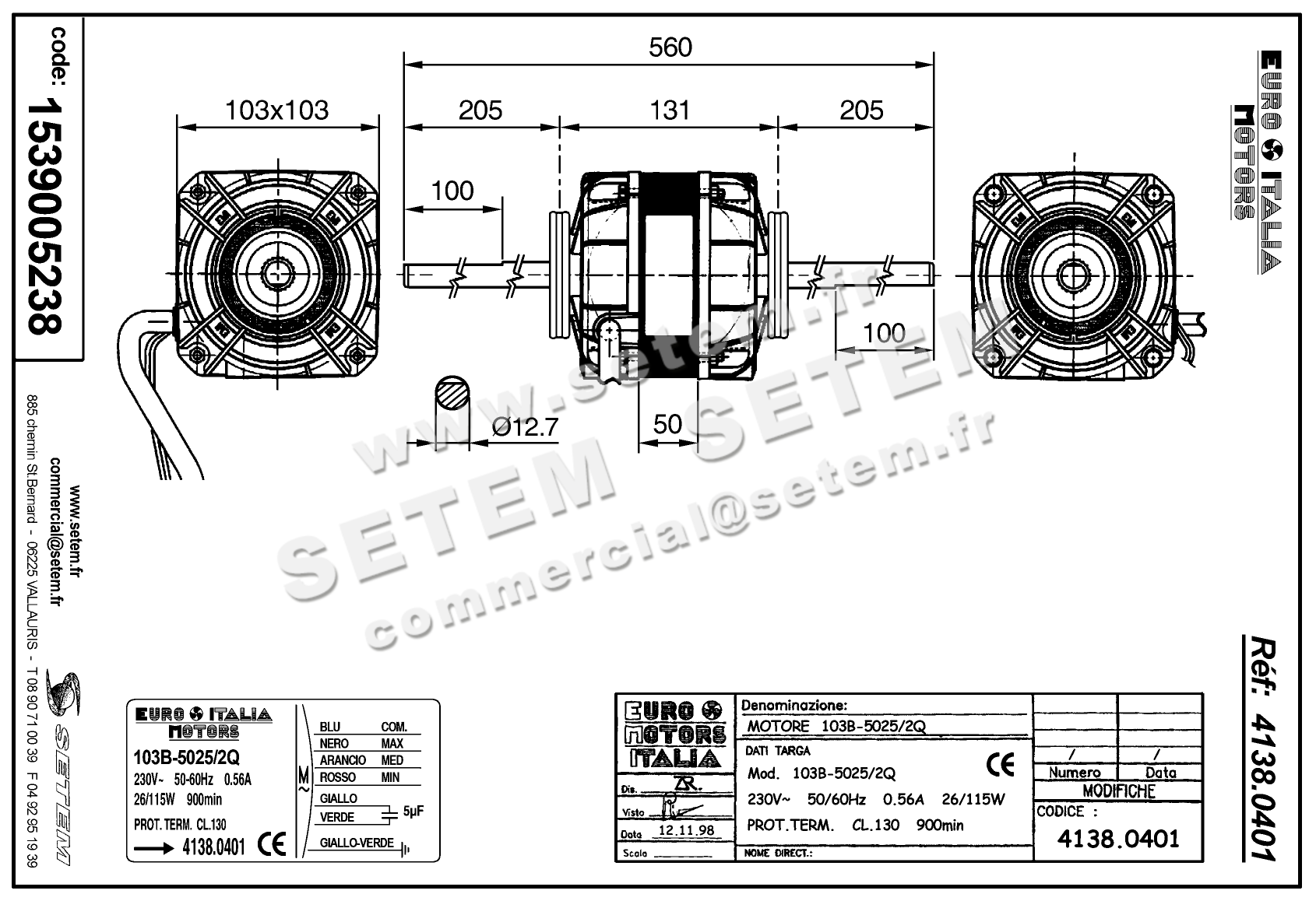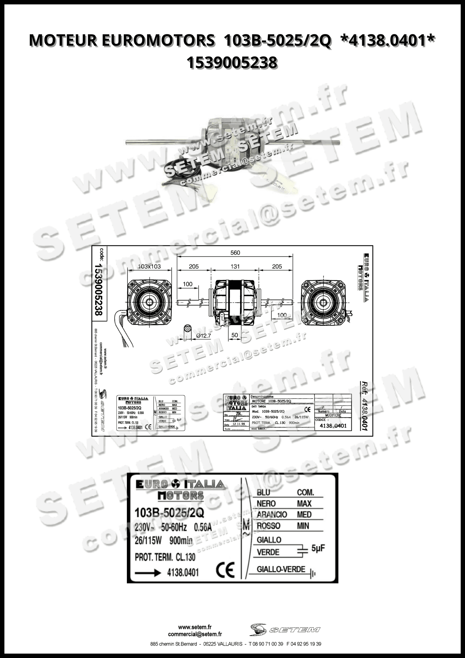 Vous recherchez un produit de marque EUROMOTORS, de désignation 103B-5025/2Q et de code usine 4138.0401.
