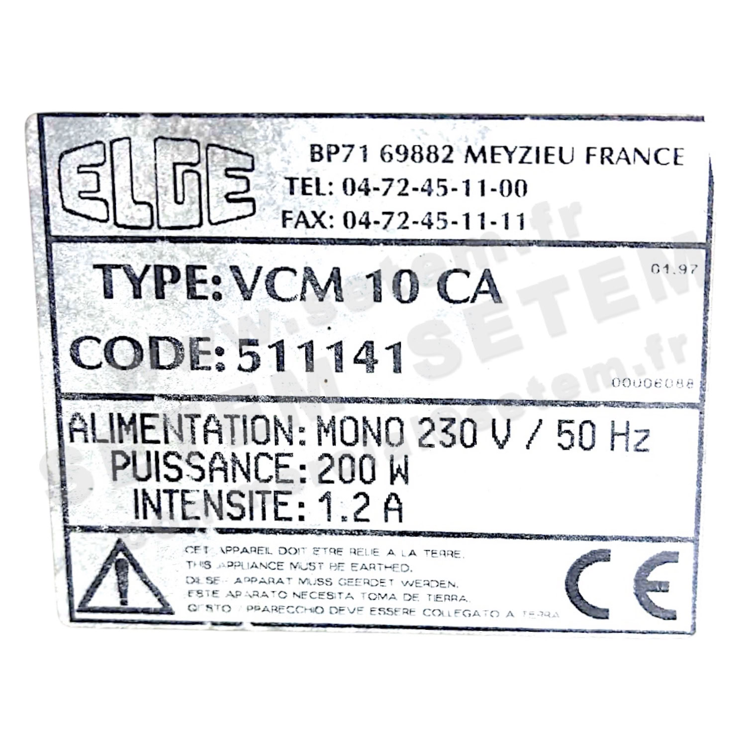 Vous recherchez un produit de marque ELGE, de désignation VCM10CA et de code usine 511141.