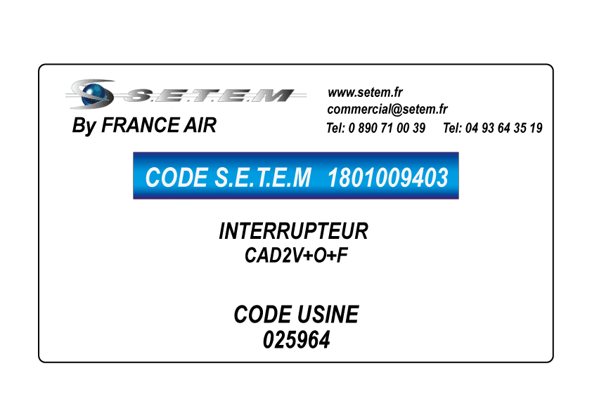 1801009403-INTERRUPTEUR FRANCE AIR CAD2V+O+F *025964*