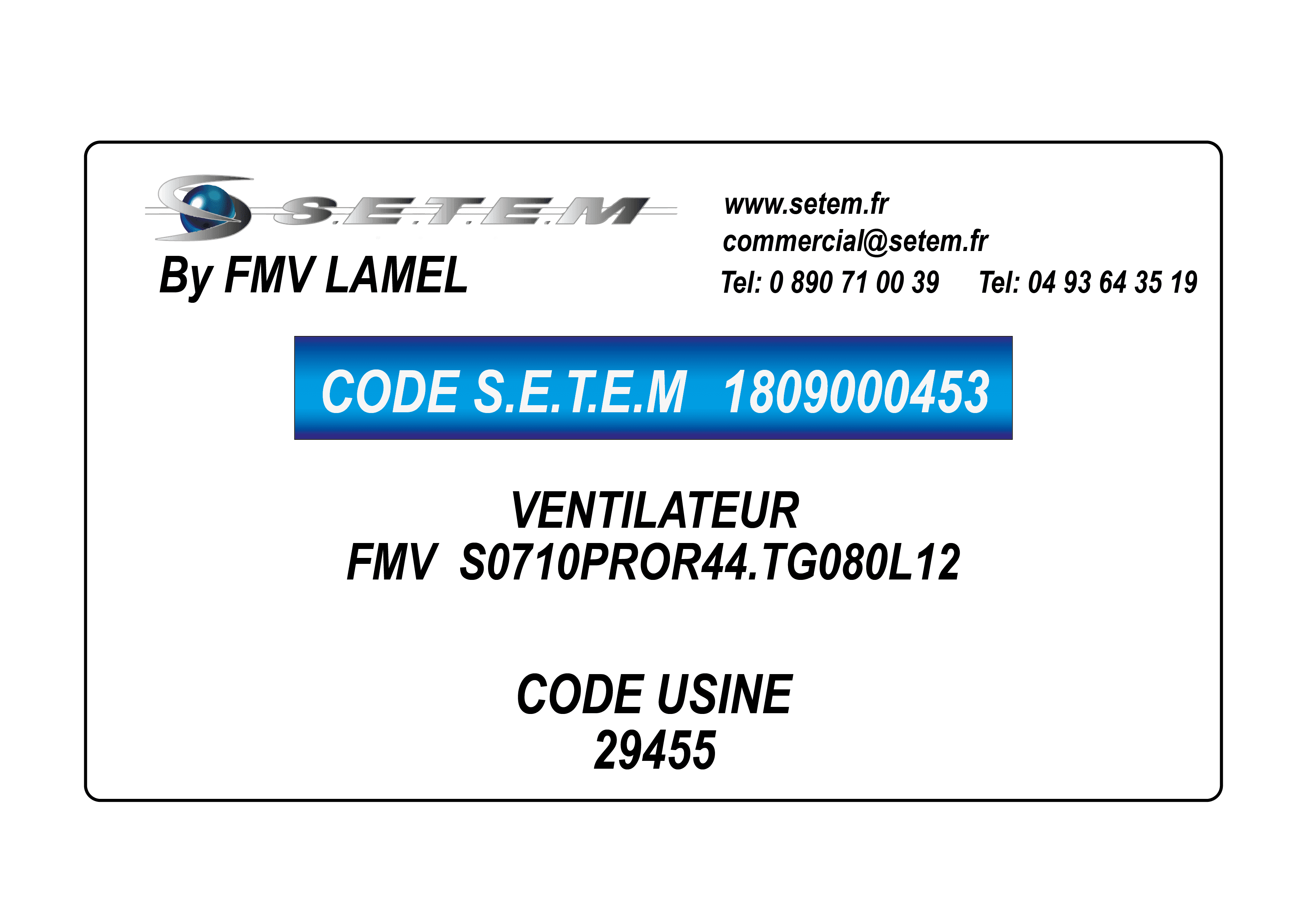 Vous recherchez un produit de marque FMV, de désignation S0710PROR44.TG080L12 et de code usine 29455.