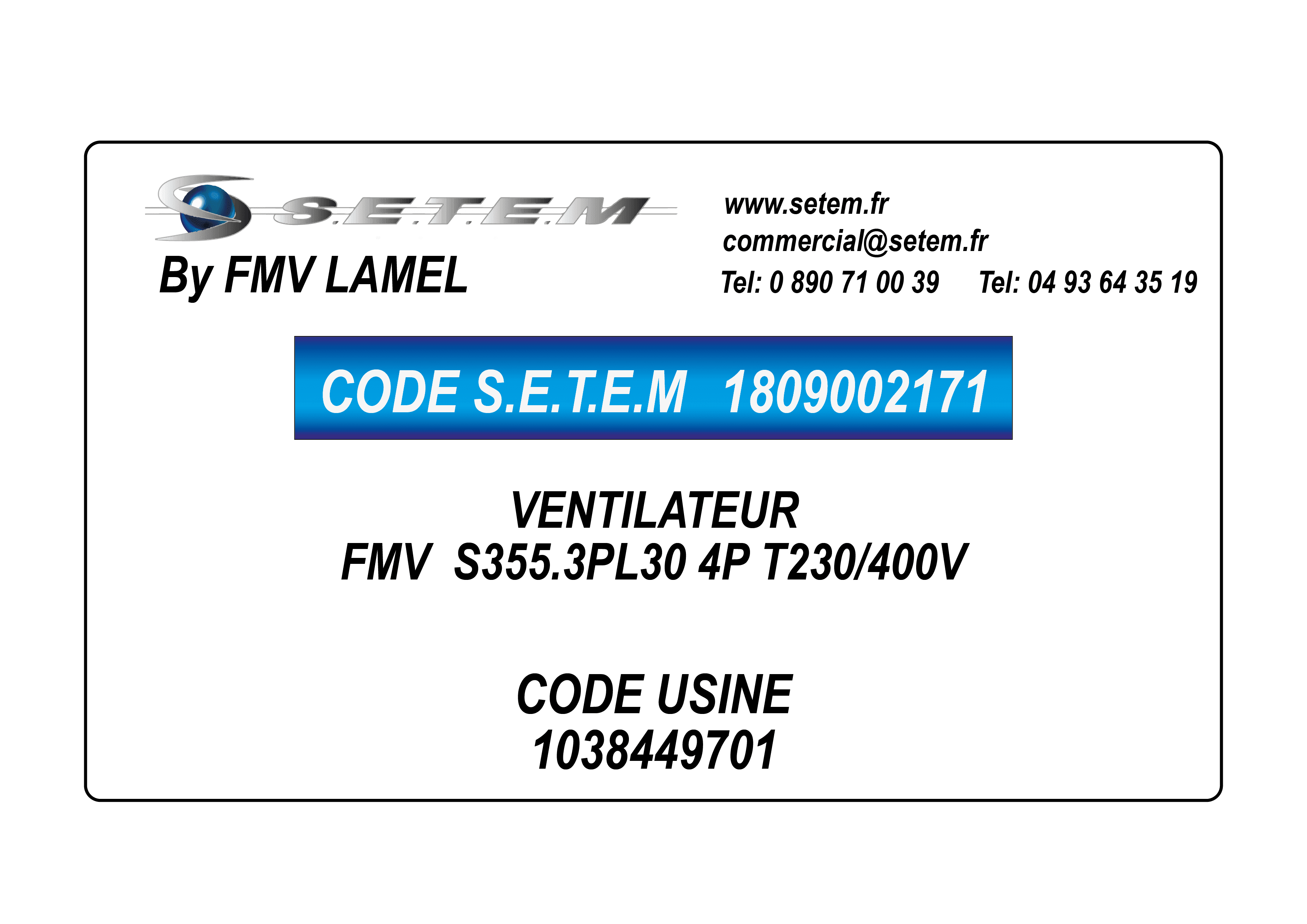 Celui-ci est connu dans le système informatique de chez S.E.T.E.M sous la référence 1809002171.