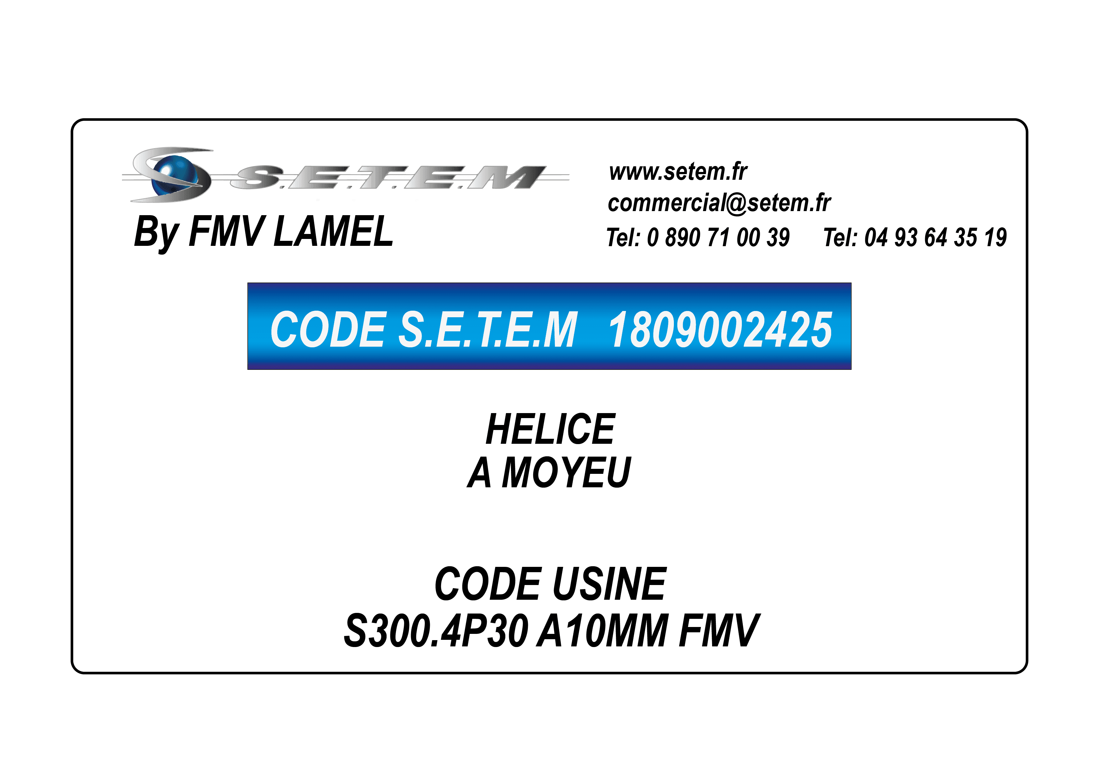 Celui-ci est connu dans le système informatique de chez S.E.T.E.M sous la référence 1809002425.