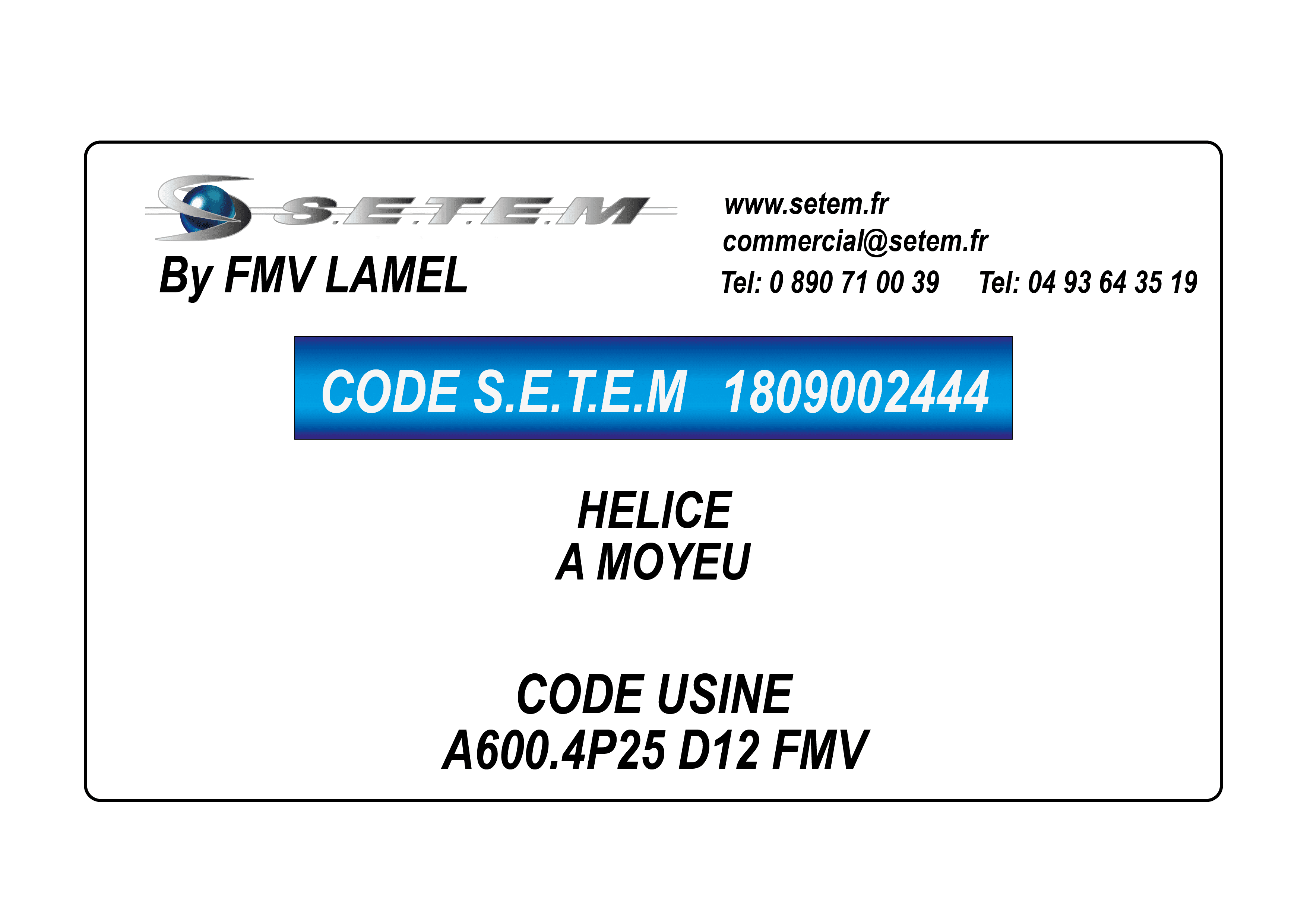 Celui-ci est connu dans le système informatique de chez S.E.T.E.M sous la référence 1809002444.