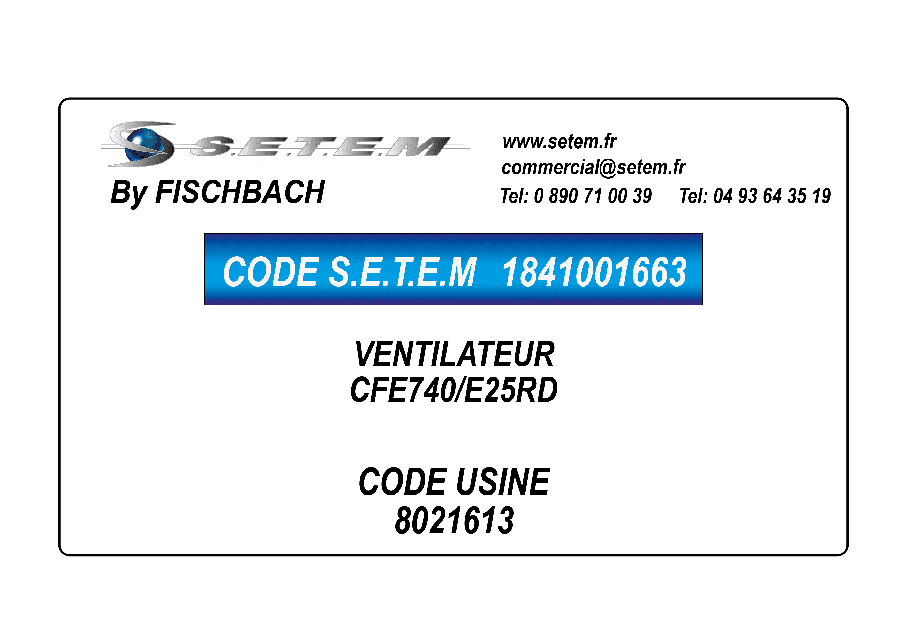 Celui-ci est connu dans le système informatique de chez S.E.T.E.M sous la référence 1841001663.
