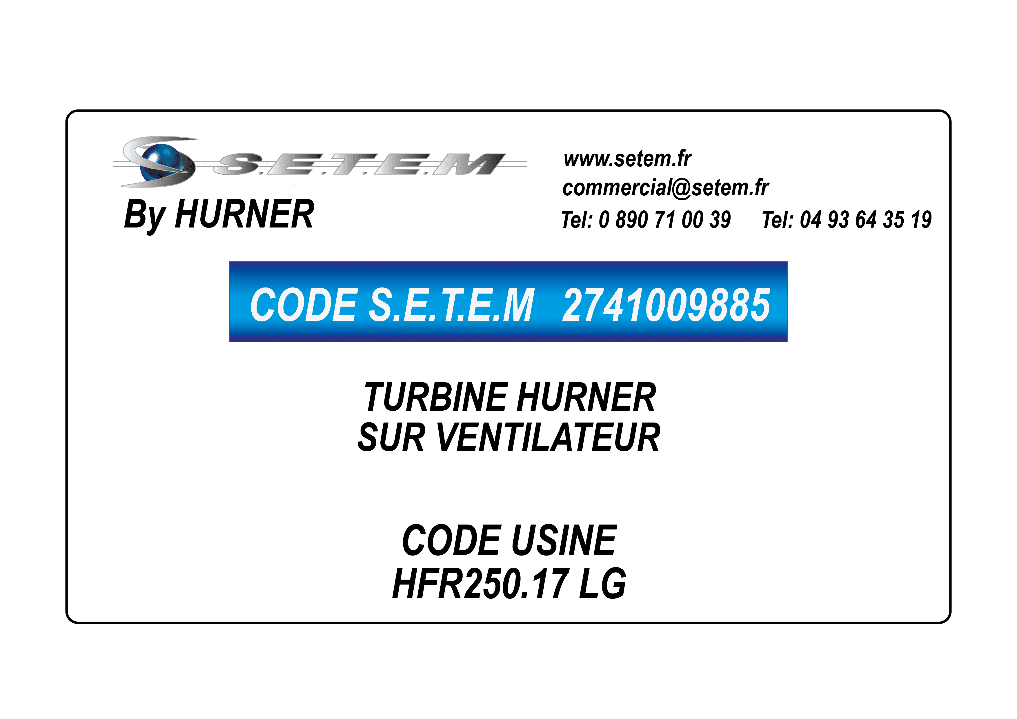 Vous recherchez un produit de marque HURNER, de désignation SUR VENTILATEUR et de code usine HFR250.17 LG .