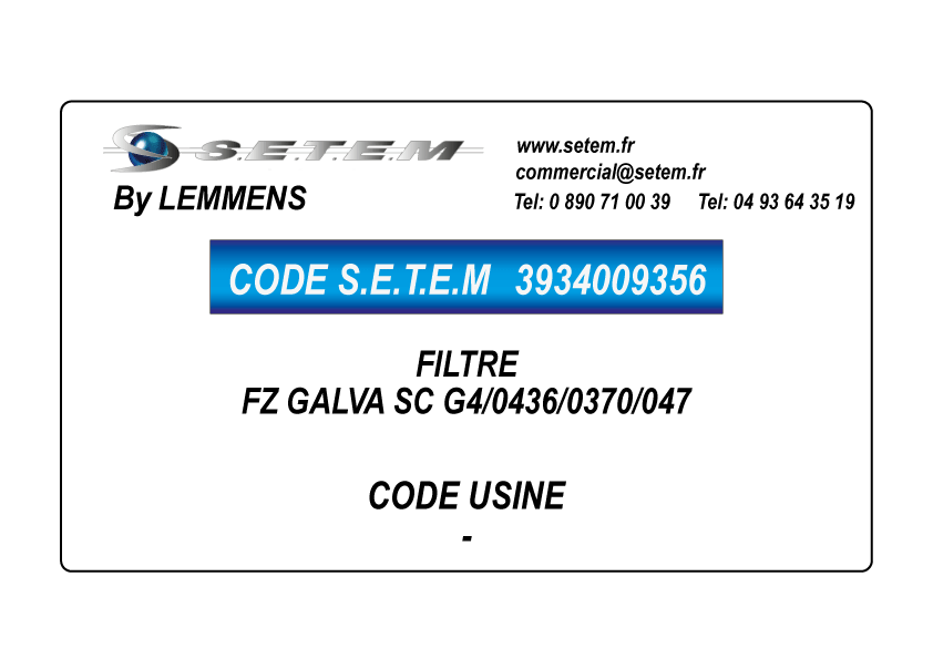 3934009356-FILTRE LEMMENS FZ GALVA SC G4/0436/0370/047