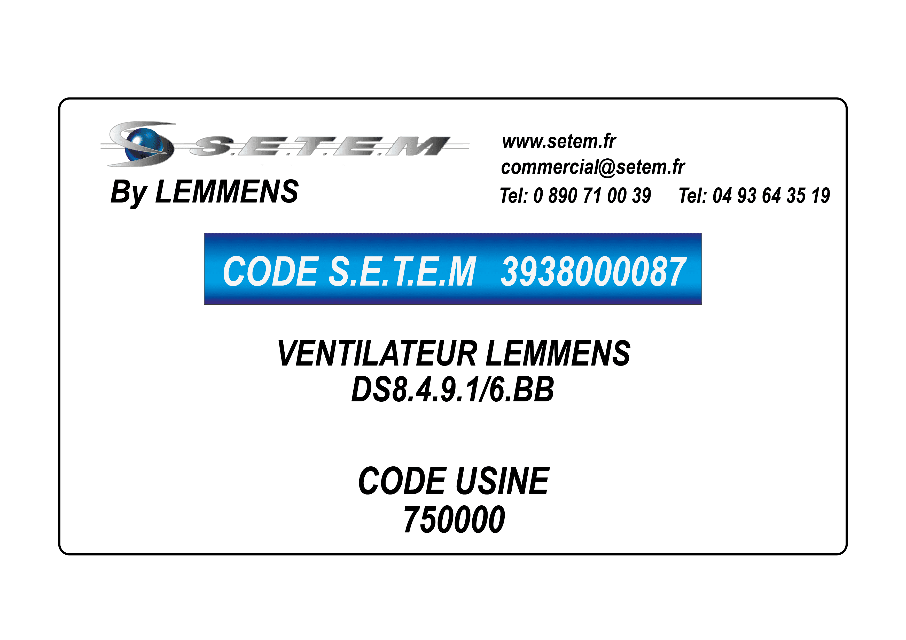 3938000087-VENTILATEUR LEMMENS DS8.4.9.1/6.BB *750000*
