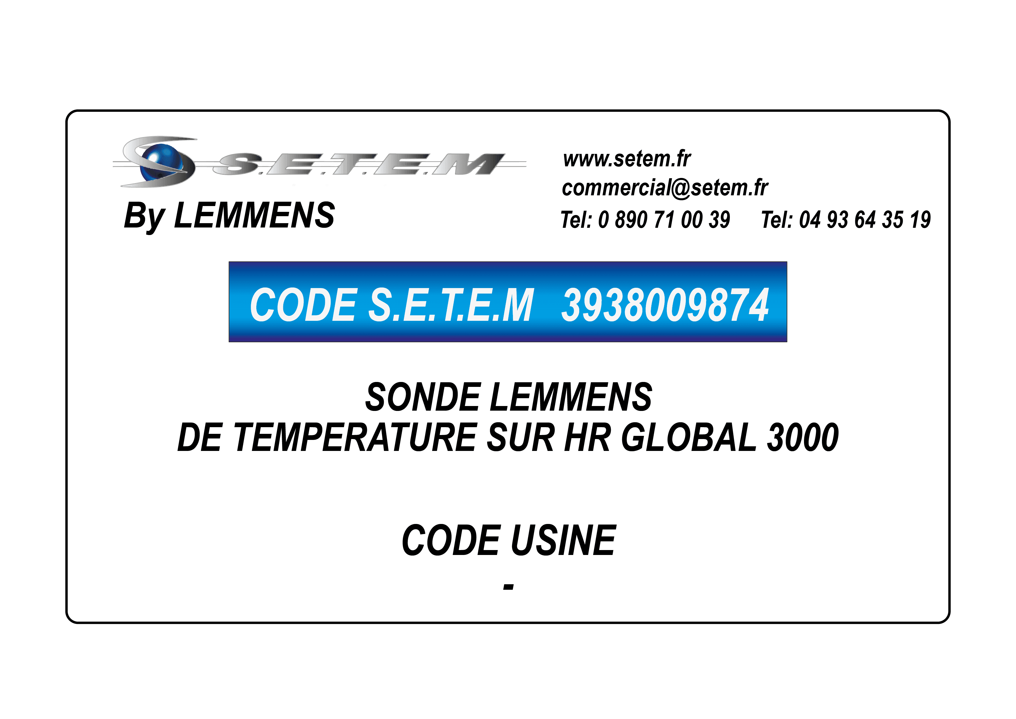 Celui-ci est connu dans le système informatique de chez S.E.T.E.M sous la référence 3938009874.
