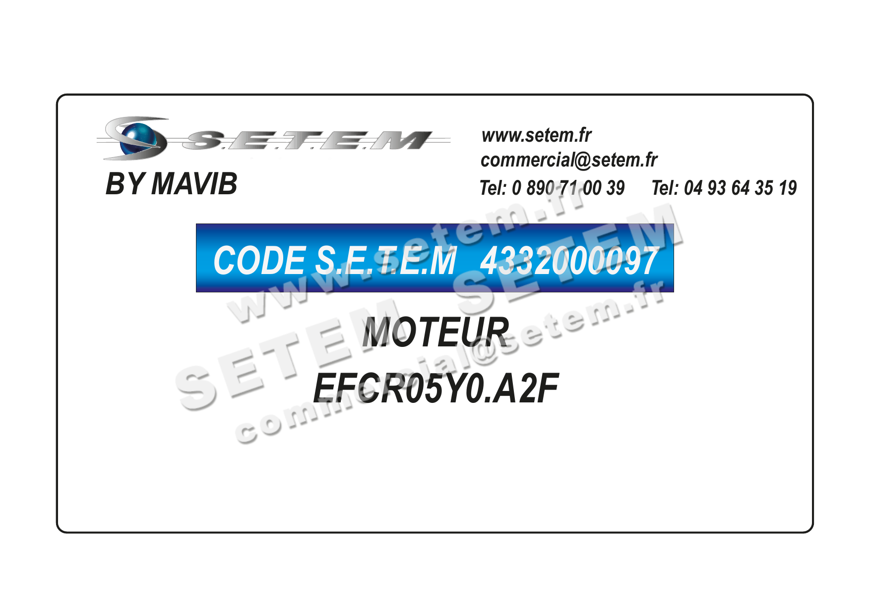 Celui-ci est connu dans le système informatique de chez S.E.T.E.M sous la référence 4332000097.