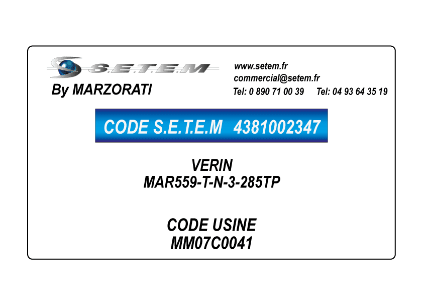 Celui-ci est connu dans le système informatique de chez S.E.T.E.M sous la référence 4381002347.