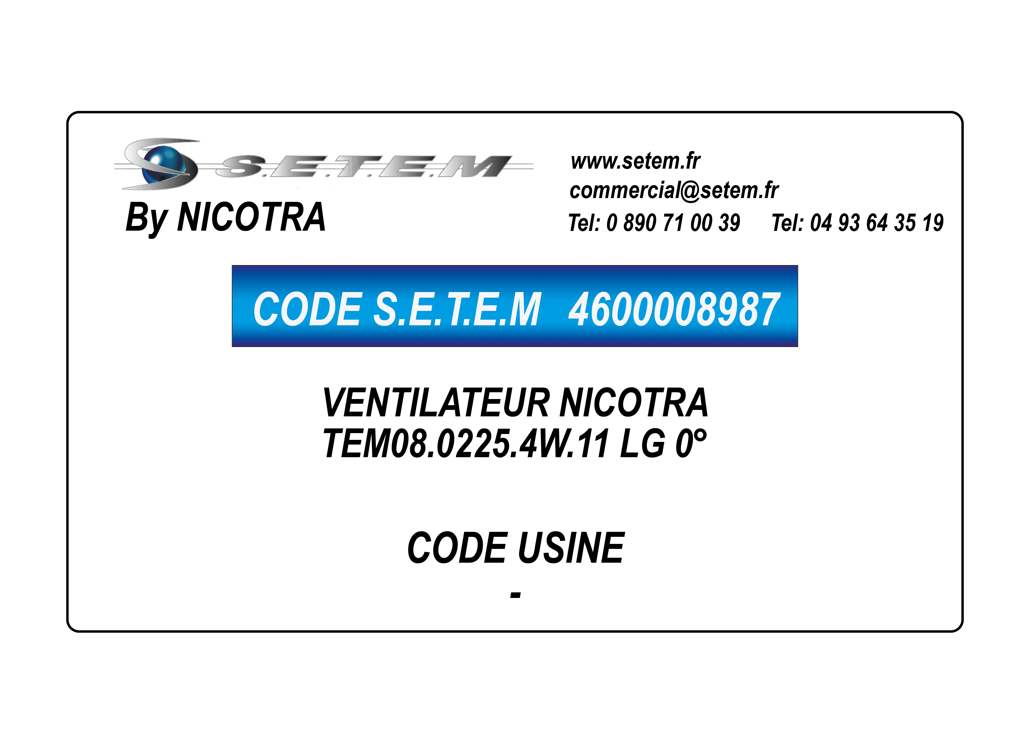 Celui-ci est connu dans le système informatique de chez S.E.T.E.M sous la référence 4600008987.