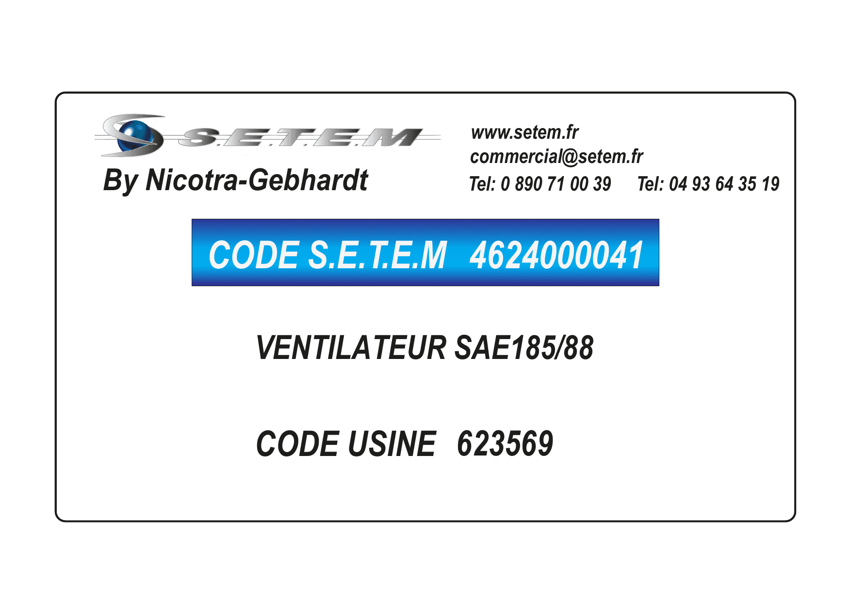 Celui-ci est connu dans le système informatique de chez S.E.T.E.M sous la référence 4624000041.