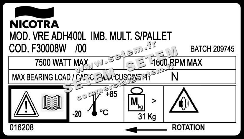 Vous recherchez un produit de marque NICOTRA GEBHARDT, de désignation VRE ADH400L et de code usine F30008W.