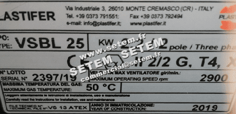 Vous recherchez un produit de marque PLASTIFER, de désignation VSBL25 A LG 90° 2.20KW 2P T230/400V EEXDIIBT4.