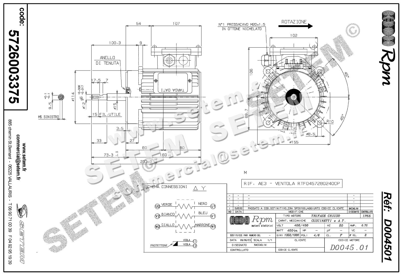 Celui-ci est connu dans le système informatique de chez S.E.T.E.M sous la référence 5726003375.