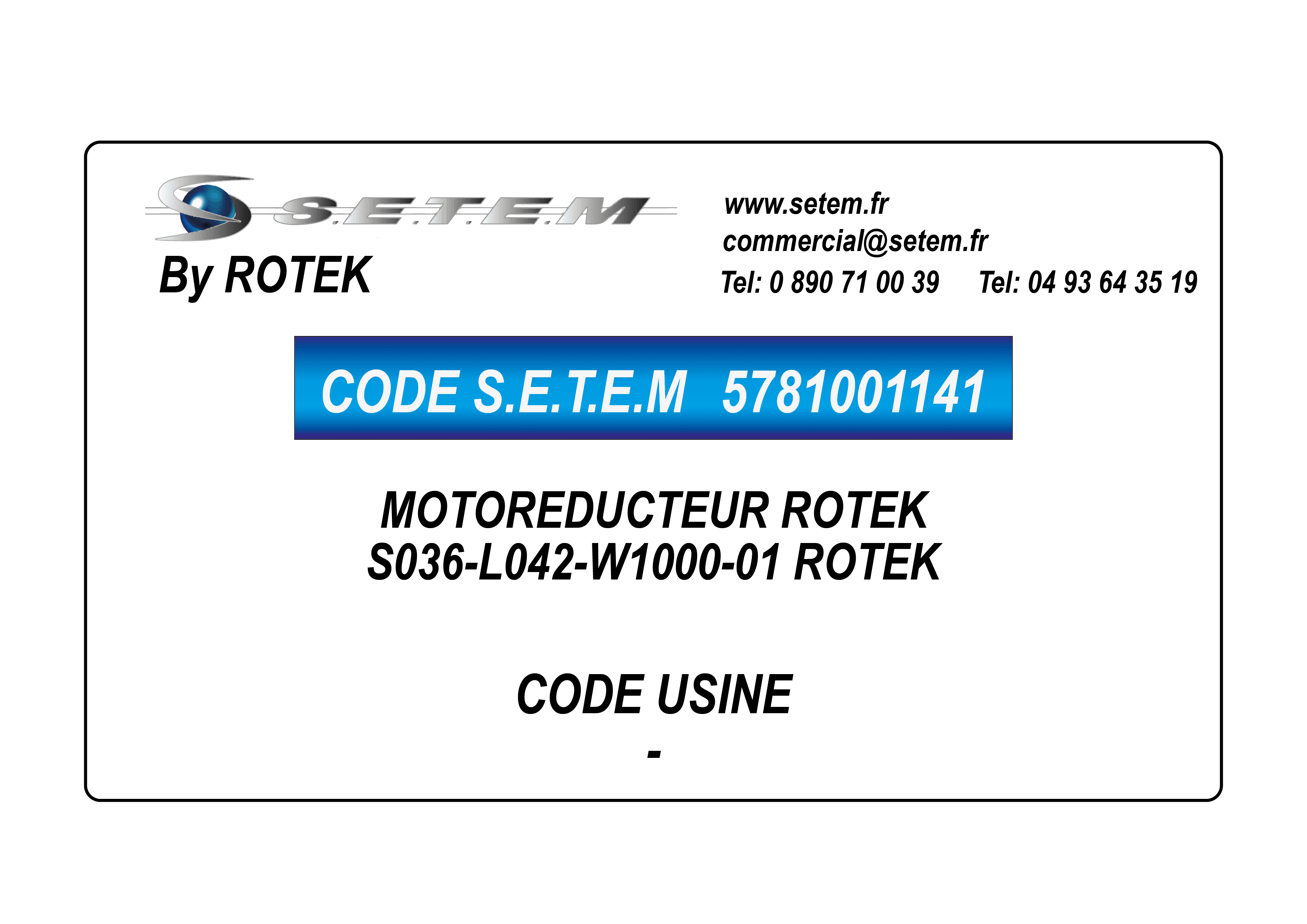 5781001141-MOTOREDUCTEUR* S036-L042-W1000-01 ROTEK