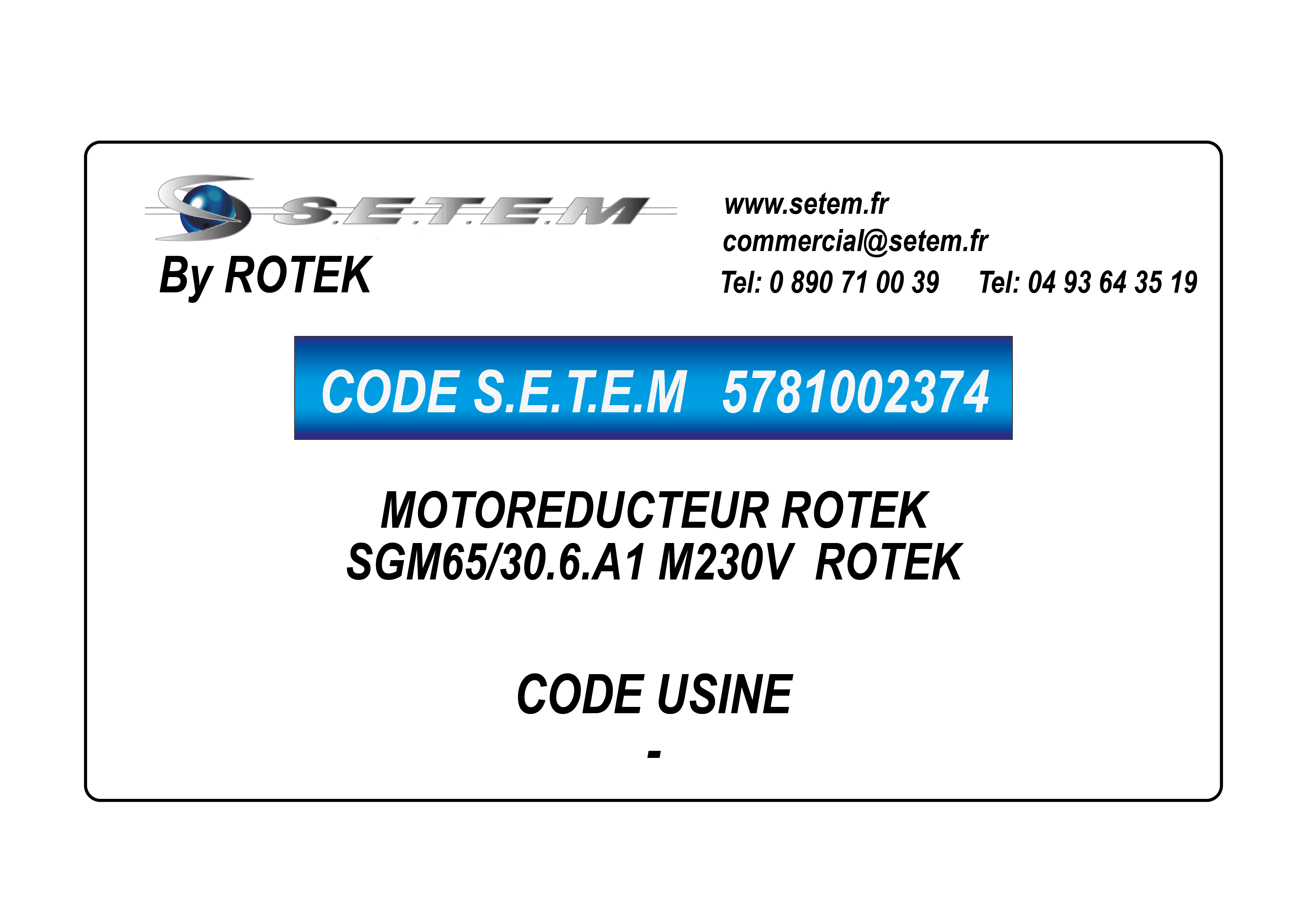 Celui-ci est connu dans le système informatique de chez S.E.T.E.M sous la référence 5781002374.