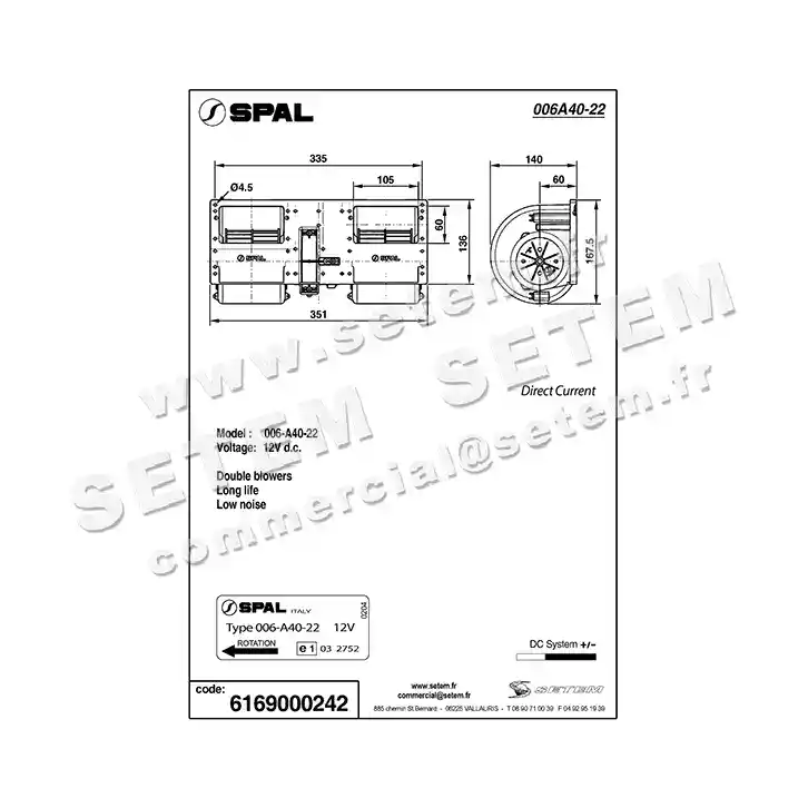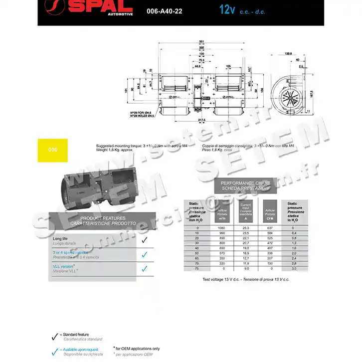 Vous recherchez un produit de marque SPAL, de désignation 006.A40.22 .