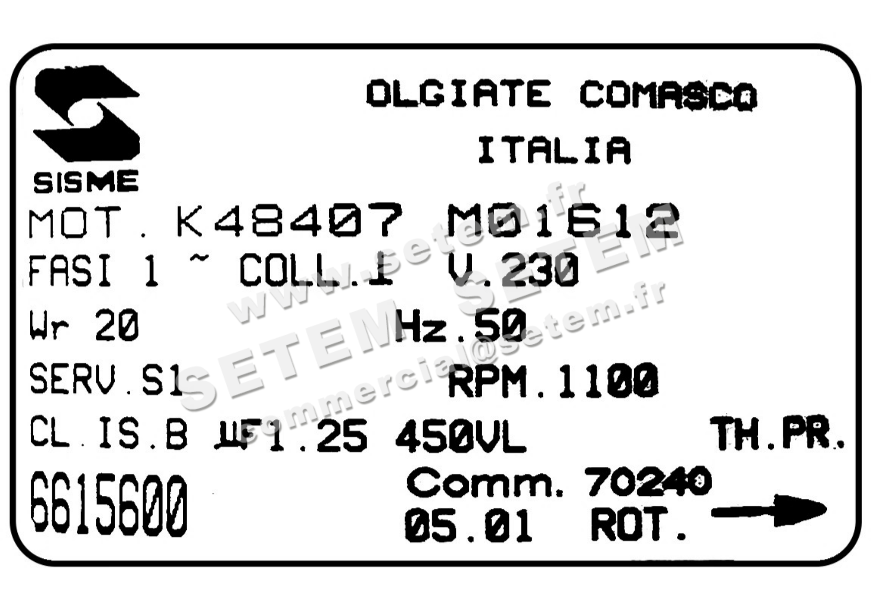 6185000096-MOTEUR SISME K48407M01612 « 6615600 »