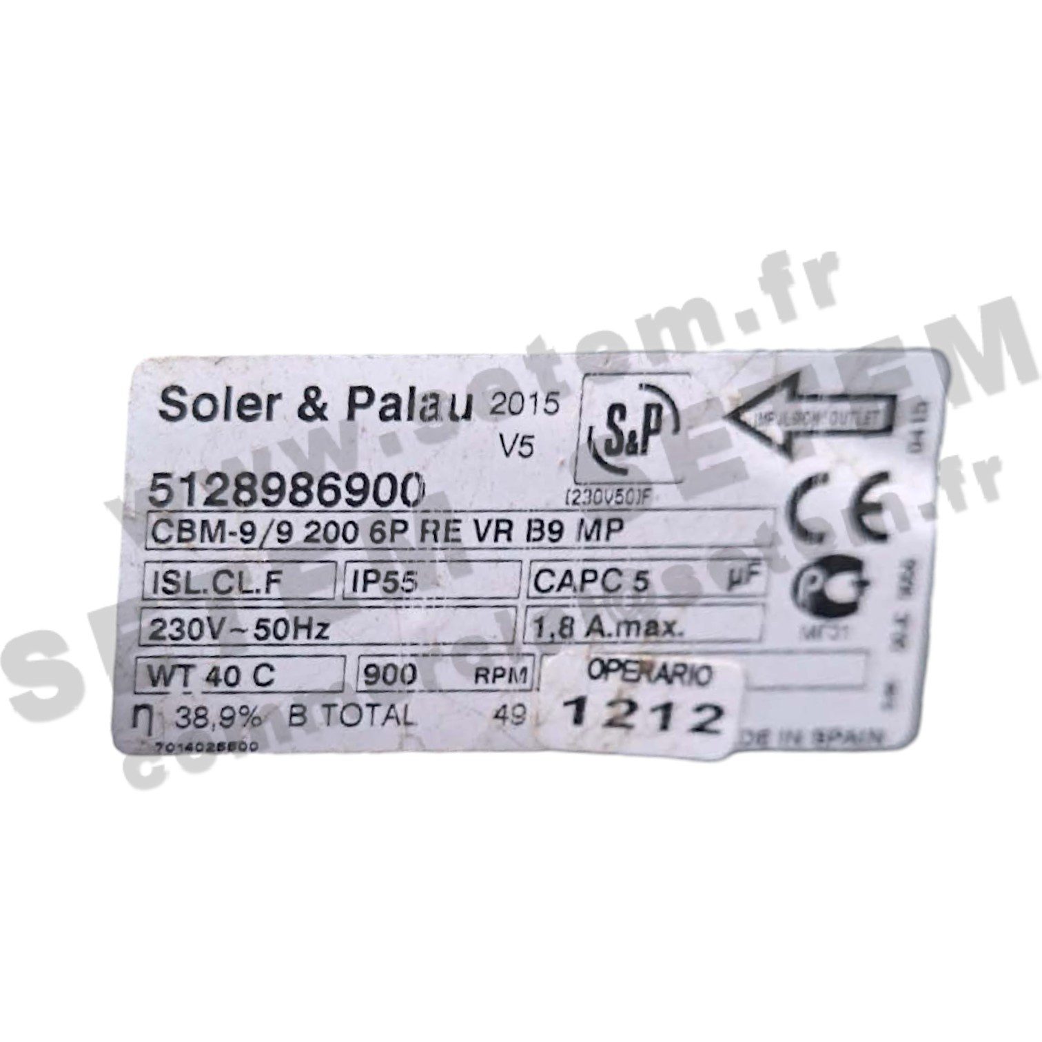 6194006287-VENTILATEUR SOLER & PALAU S&P CBM-9/9 200W 6P M230V 1V RE VR B9 MP *5128986900*