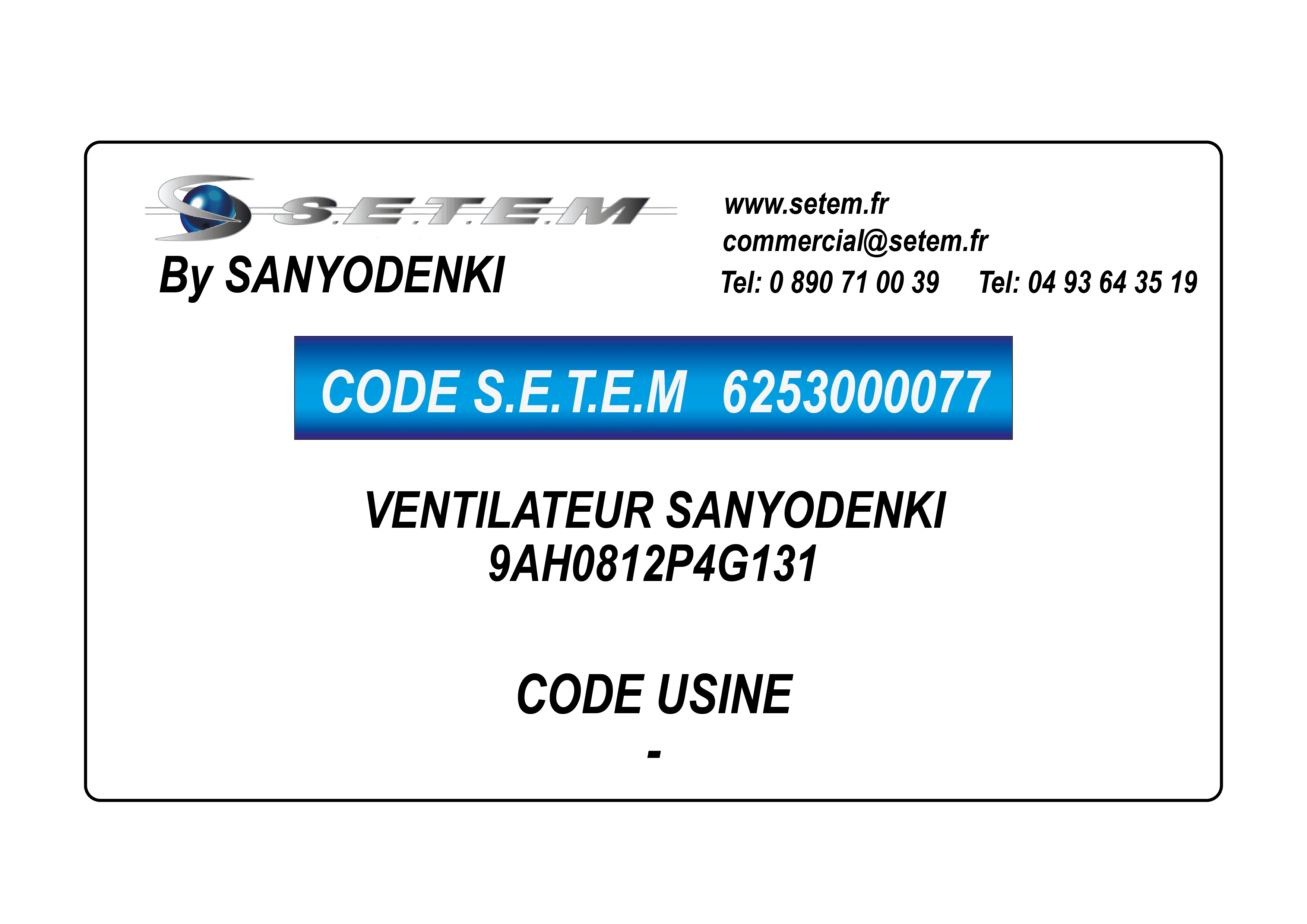 Celui-ci est connu dans le système informatique de chez S.E.T.E.M sous la référence 6253000077.