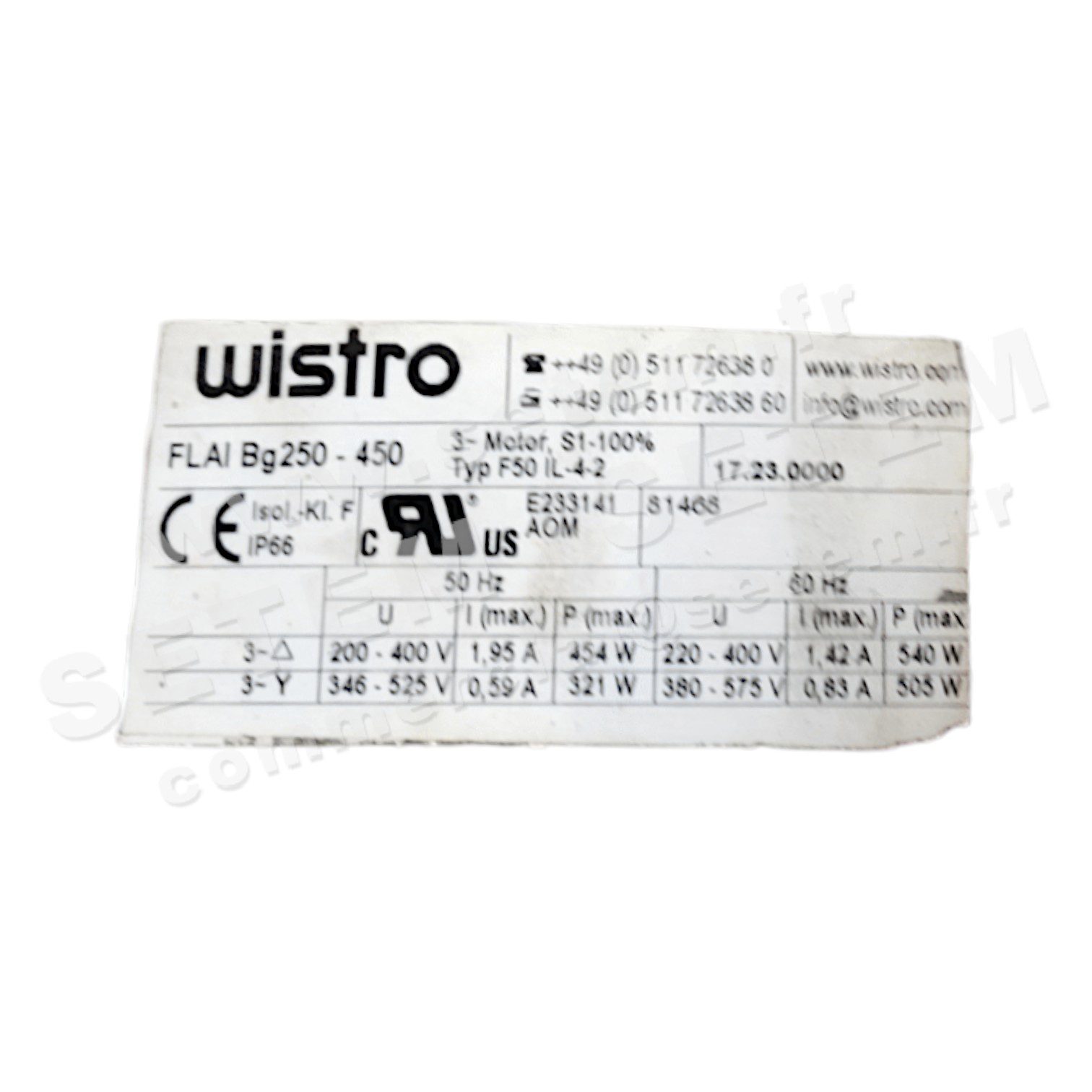 Vous recherchez un produit de marque WISTRO, de désignation FLAIBG250-450 F50IL-4-2 et de code usine 17.23.0000.