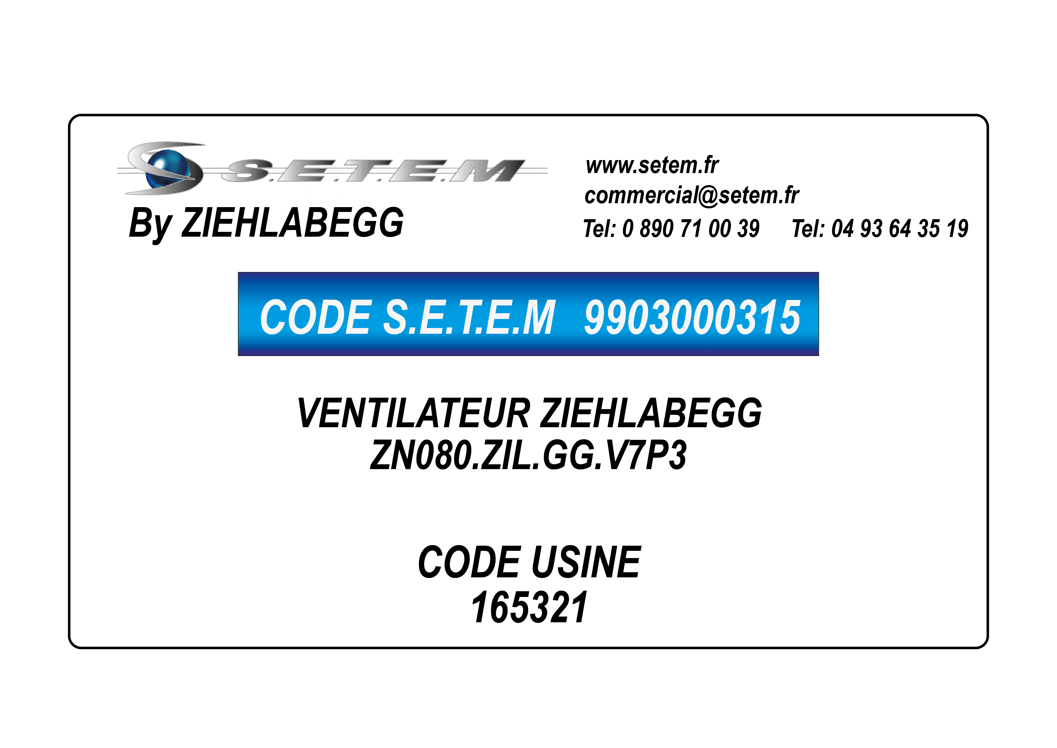 Celui-ci est connu dans le système informatique de chez S.E.T.E.M sous la référence 9903000315.